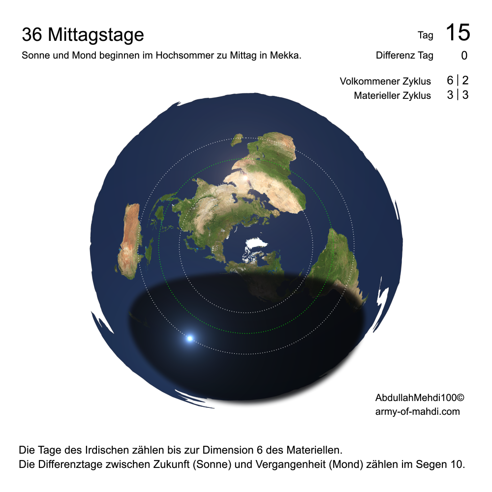 In der Zahl 36 ist der natürliche Wert gespeichert, auf der sich die Zeiten in und mit den 9 Dimensionen strukturieren. (4×9=36). Dieser besondere Wert 36 fügt sich zusammen aus 3 und 6, aus den Dimensionen des Materiellen (Wasser) und dessen Grenzen (Feuer). Und entspringt in der Quersumme aus den 9 Dimensionen (3+6=9). Der Mond ist in der Zeit zurück am fallen und befindet sich nach 36 Tagen wieder an der selben stelle auf Erden. Seine Sichel jedoch ist auf den Zyklus des Materiellen bezogen. Auf die 30 x 12 der mitleeren Erdenzeit von 360 Tagen.